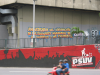 Noch auffälliger als vor 2 Jahren werden die Delegierten mit Werbung für den Aufbau des Sozialismus begrüßt. Die Debatte um die Umgestaltung der Gesellschaft ist allgegenwärtig, an einer der Hauptstraßen in Caracas wird auf Wandmalereien für die neue Einheitspartei geworben. Organisationen wie die Frente Francisco Miranda werben ebenso für den Sozialismus wie der Kommunistische Jugendverband Venezuelas JCV (www.jotaceve.org), der maßgeblich an der Vorbereitung der Weltfestspielgeburttagsfeier beteiligt ist. Das Bild ist geprägt von den vielen freiwilligen Helfern, die für Transport und Essen sorgen und die Delegierten über ihre Herkunftsländer ausfragen. Doch im Vergleich zu den Weltfestspielen 2005 hat sich ihr Auftreten verändert, auch sie tragen T-Shirts mit der Aufschrift „Socialismo o muerte“ – Sozialismus oder Tod. Start